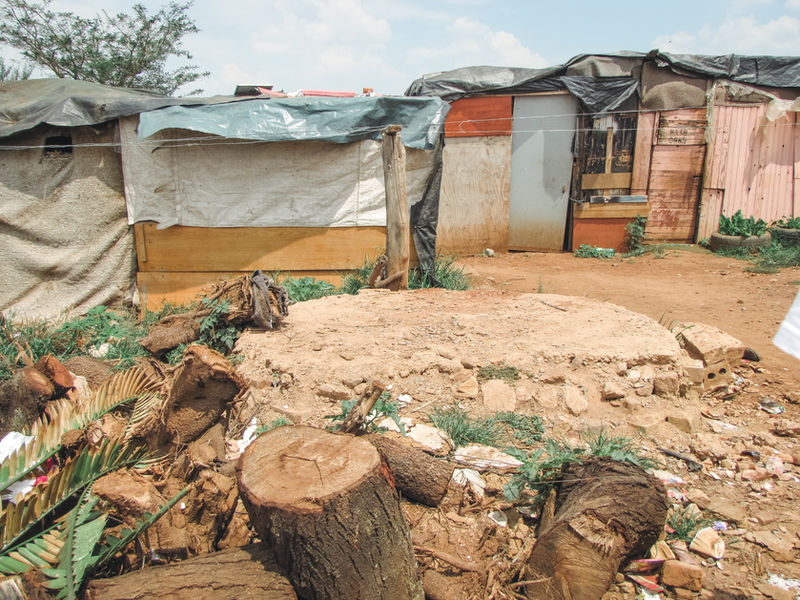 Woodlane Village is an informal settlement with more than 4,000 inhabitants, and flanked by a smaller informal settlement with a few hundred people, known as Cemetery View. These two settlements are right in the middle of the Moreletapark neighbourhood with its sprawling upmarket housing estates, golf villages, suburban shopping malls and private hospital.